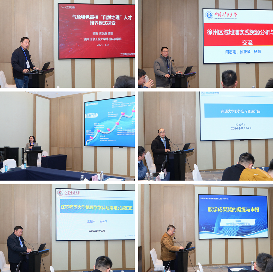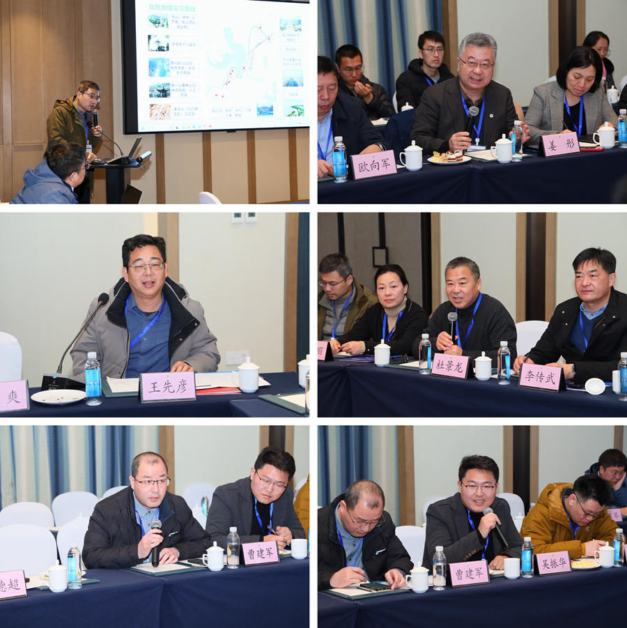 與會學者重點圍繞一流專業建設進展、研究生共享課程、江蘇省地理野外實習基地共享計劃等三個主題進行了交流討論。學者們還就氣象特色高?!白匀坏乩怼比瞬排囵B模式探索、徐州區域地理實踐資源分析與參賽交流、地理學科建設與發展、教學成果獎的凝練與申報等論題進行了匯報交流。