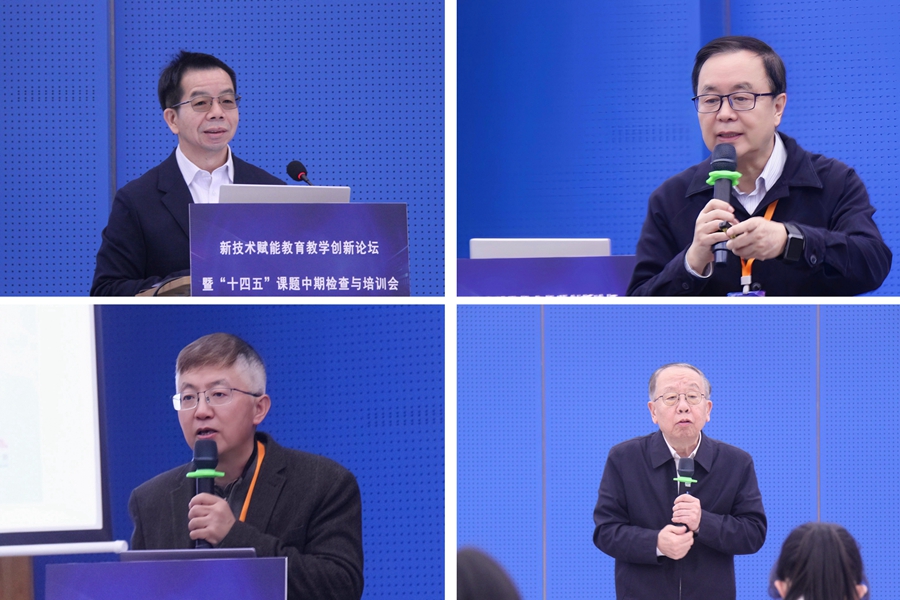 12月28-29日,由中國(guó)教育技術(shù)協(xié)會(huì)學(xué)術(shù)委員會(huì)主辦、江蘇師范大學(xué)江蘇省教育信息化工程技術(shù)研究中心承辦、清華大學(xué)現(xiàn)代教育技術(shù)雜志社支持的“新技術(shù)賦能教育教學(xué)創(chuàng)新論壇暨‘十四五’課題中期檢查與培訓(xùn)會(huì)”在我校舉辦。我校黨委副書(shū)記蔡國(guó)春,中國(guó)教育技術(shù)協(xié)會(huì)學(xué)術(shù)委員會(huì)常務(wù)副主任劉雍潛分別致辭。來(lái)自17個(gè)省份的高校、中小學(xué)、職業(yè)院校、教育行政部門(mén)、企業(yè)的100余名代表,圍繞“新技術(shù)賦能教育教學(xué)創(chuàng)新”,開(kāi)展深入交流與研討。論壇開(kāi)幕式由我校智慧教育學(xué)院教授、中國(guó)教育技術(shù)協(xié)會(huì)學(xué)術(shù)委員會(huì)秘書(shū)長(zhǎng)楊現(xiàn)民主持。
